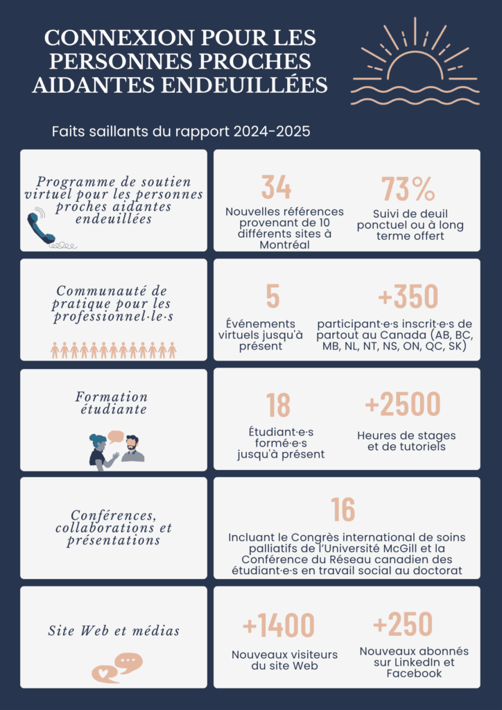 • Un guide aidant les professionnels de la santé à offrir aux aidants du soutien personnalisé dans le deuil;